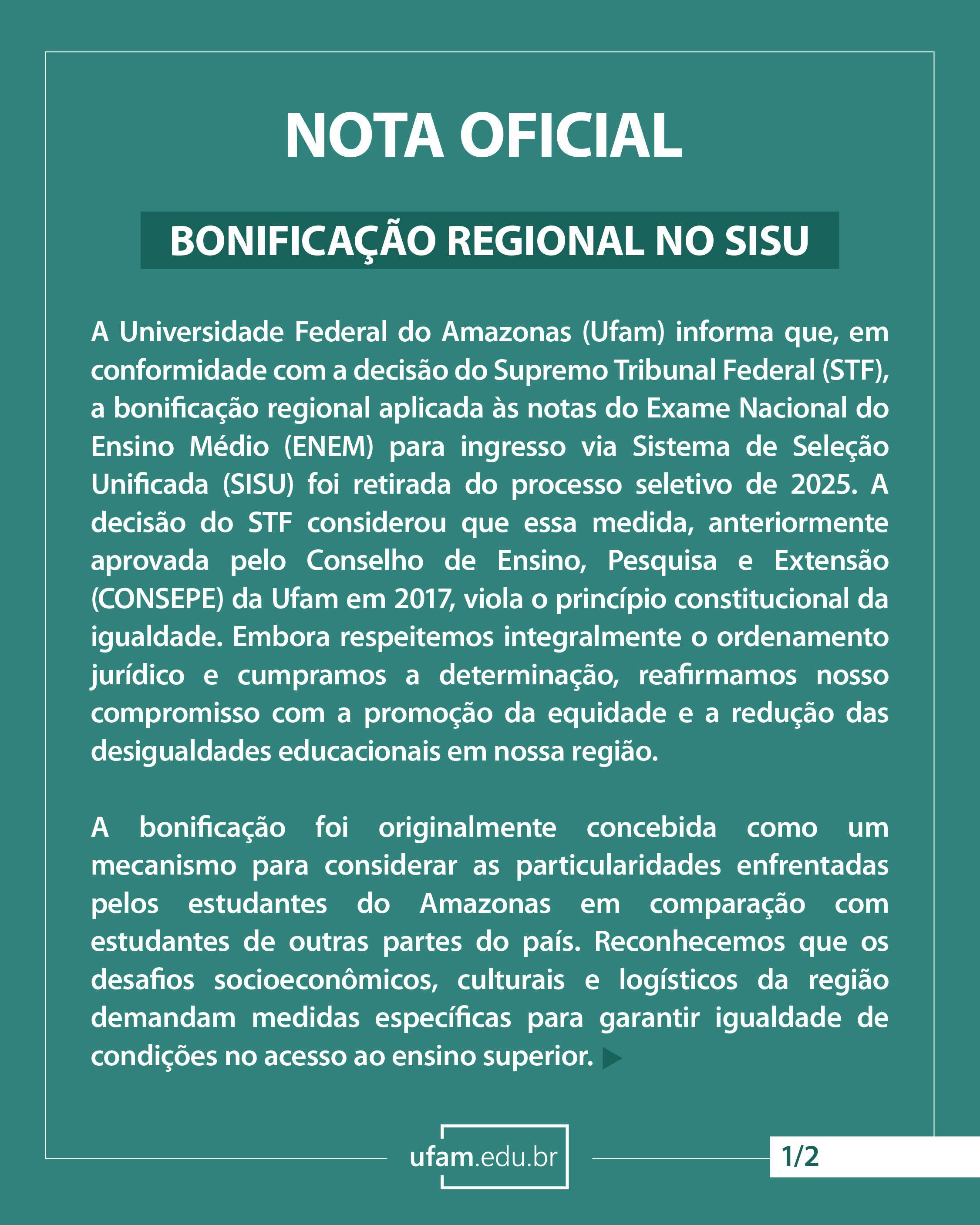 Bonificação Regional Sisu - Nota Oficial